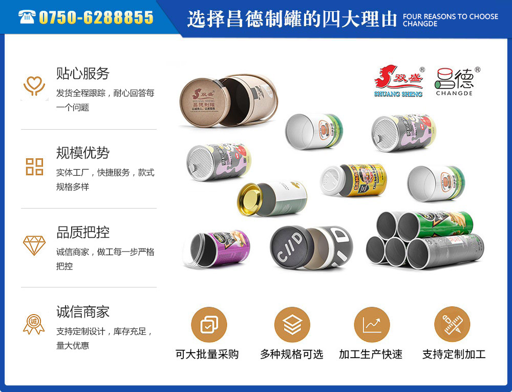 江門市昌德五金制罐有限公司位于江門與珠海臨近的古井鎮(zhèn),是專業(yè)生產(chǎn)紙罐,食品紙罐系列的包裝研制、開發(fā)、生產(chǎn)的廠家,從建廠至今,公司本著“重合同、守信用”的原則,以“質(zhì)量求生存,客戶至上”為經(jīng)營(yíng)宗旨,贏得了很好的信譽(yù),公司擁有國(guó)內(nèi)一流的技術(shù)設(shè)備和多年的生產(chǎn)經(jīng)驗(yàn)。年產(chǎn)休閑食品紙筒500萬左右,紙筒2000萬支左右,易拉罐,食品罐等1000萬左右,產(chǎn)品銷往各地。我廠是以高科技為先導(dǎo),以技術(shù)創(chuàng)新整合為手段,成為迅速崛起的專業(yè)性包裝企業(yè),憑借艱苦的創(chuàng)業(yè)精神和集體智慧,采用規(guī)范的現(xiàn)代企業(yè)運(yùn)行機(jī)制,形成具有鮮明特色的企業(yè)文化模式和管理...